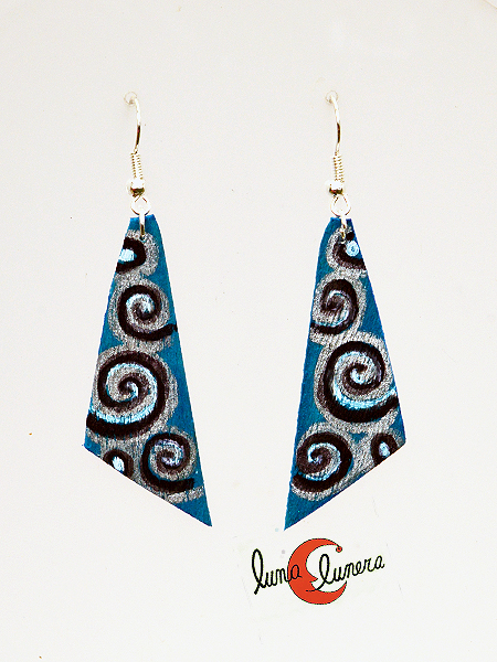 Pendientes de madera pintados, espirales azul.