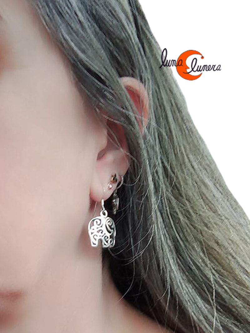 Pendientes de plata de 925 de pureza de tamaño pequeño. Pendiente de plata lisa con cierre abierto con forma de elefante calado. No pesa.