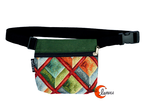 Riñoneras de tela BRUO. Riñonera pequeña sencilla de una cremallera rombos.