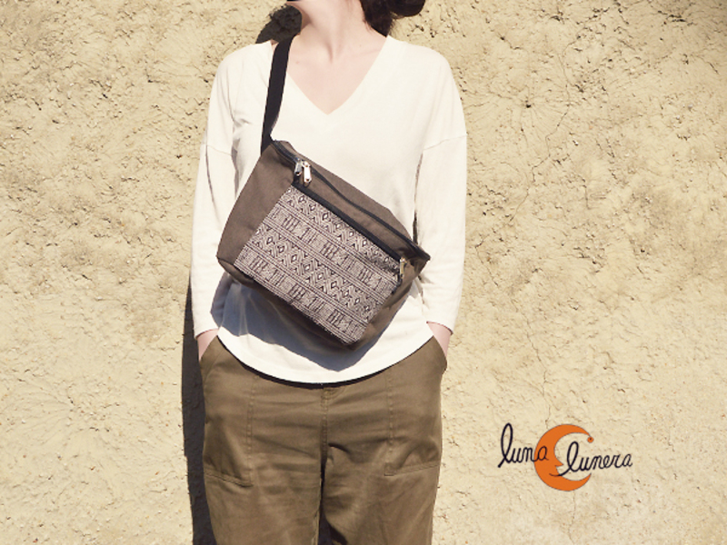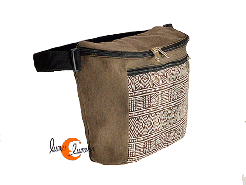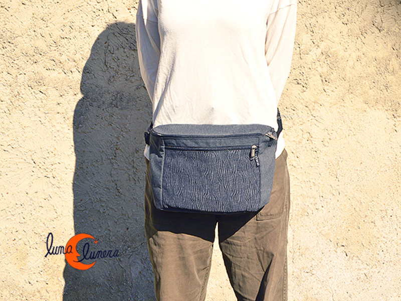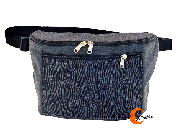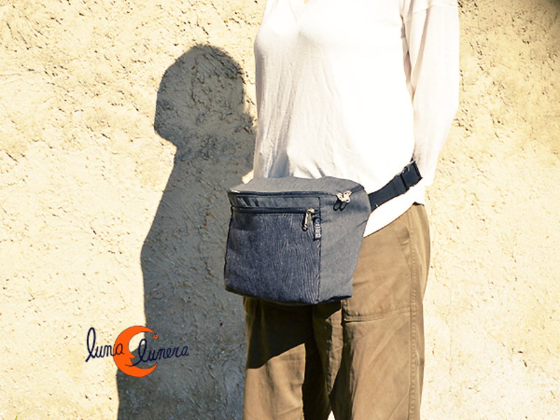 Riñoneras del taller artesanal BRUO, que se caracteriza por la utilización de materiales nacionales km 0, sus cómodos diseños y la estupenda calidad de sus productos. Riñonera MUY GRANDE con tapa redondeada con cremallera y dos bolsillos también con cremallera, uno por delante y otro antirrobo por detrás. Es muy espaciosa, caben cómodamente un teléfono móvil, un monedero o cartera grandes, llaves, botellín de agua, algún libro...muchas cosas porque es muy grande, es comoun bolso de tamaño mediano. Forrada por dentro, es súper resistente y tiene asa de algodón regulable para llevarla e la cintura o cruzada desde los hombros.
