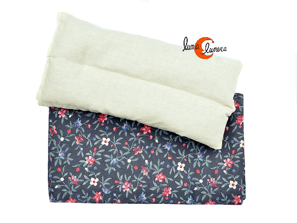 Saco térmico terapéutico de semillas, olor lavanda. Florecillas gris.
