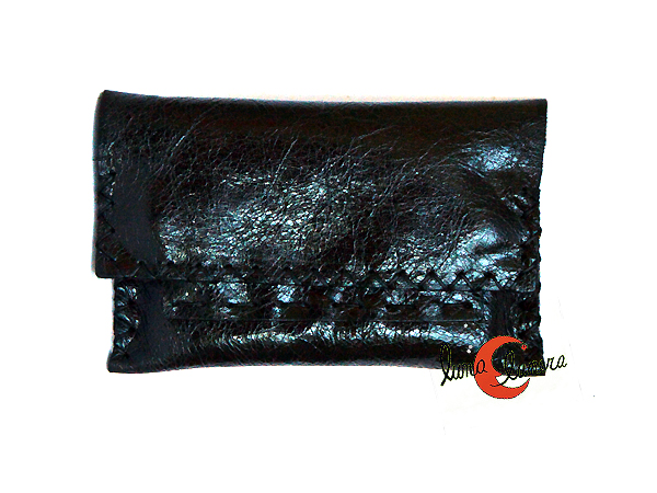 Tabaqueras de cuero para el tabaco de liar. pequeña, marrón oscura de piel rugosa.